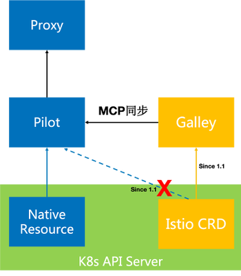 这个工作还在进行中,目前 Istio 的 CRD 已经修改为由 Galley 读取,而 K8s 的原生资源(Service / Deployment / Pod 等),暂时还是由 Pilot 读取。
