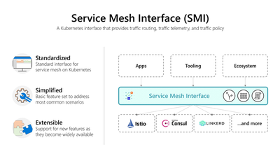 - 微软在 kubeconf 上推出 Service Mesh Interface,准备定义在 Kubernetes 上运行服务网格的规范,为 Service Mesh 带来了灵活性和互通性。SMI 由微软牵头,联合 Linkerd,HashiCorp,Solo,Kinvolk 和 Weaveworks。