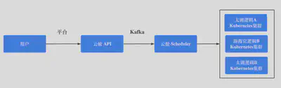 对Kubernetes集群的操作会分解成多个Task,Task之间有依赖关系,组装成Job发送给Kafka,云舱 Scheduler 进行消费和处理。比如部署一个Zookeeper集群,先创建容器,再创建Service负载,配置DNS策略,配置监控,这是一个完整的部署任务。