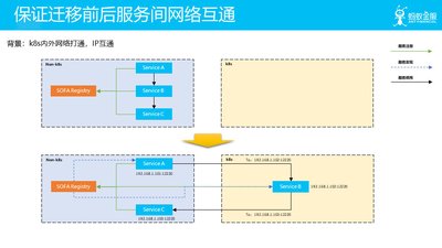 首先,第一个关键是尽量保证迁移前后服务间网络互通。
