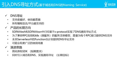 - 在 SOFAMesh 和 SOFAMosn 中,我们已经基于名为 x-protocol 的方式实现了 DNS 通用寻址方式,用来解决 Dubbo/HSF/SOFA 等传统 SOA 服务模型在 Service Mesh 下的访问问题(备注:具体内容请见我的博客文章 SOFAMesh 中的多协议通用解决方案 x-protocol 介绍系列 (1)-DNS 通用寻址方案 )