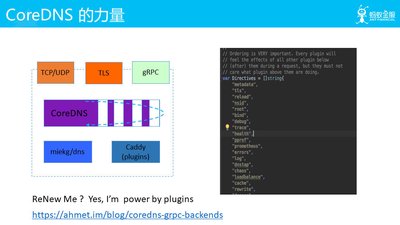 - 后端可以采用 UDP/TCP、TLS 或者 gRPC 作为后端数据查询。上面有个 Google 工程师用 gRPC 做了一个 CoreDNS 插件的后端数据查询例子,有兴趣的同学可以看下。