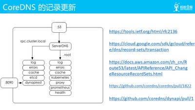 - 到了我们最关键的点了:我们应该怎么更新我们的 DNS。其实这点 CoreDNS 社区里面已经有人提出需求用 REST API 的形式提供更新 DNS 的接口。