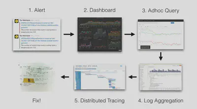 以 Grafana Loki 中介绍中的一个典型问题排查过程来看: