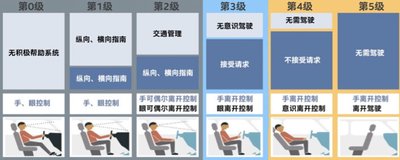 自动驾驶一共分为 6 级,其中 0-2 级主要还是靠人来进行决定,到了等级 3 之后就可以进行无意识驾驶,也就是手眼可以暂时性不用关注驾驶,到了等级 5 的话人就可以完全脱离驾驶这个枯燥的工作,在车上可以自由活动。