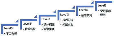 - 等级 0:手工分析,依靠基础的 Dashboard、告警、日志查询、分布式链路追踪等方式进行手动告警、分析,也是目前绝大部分公司使用的场景