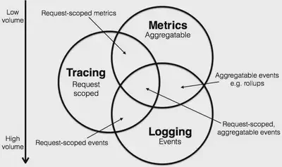 上面这幅图详细大家非常熟悉,这是 Peter Bourgon 在参加完 2017 Distributed Tracing Summit 后发表的一篇博文,简洁扼要地介绍了 Metrics、Tracing、Logging 三者的定义和关系。这三种数据在可观测性中都有各自的发挥空间,每种数据都没办法完全被其他数据代替。