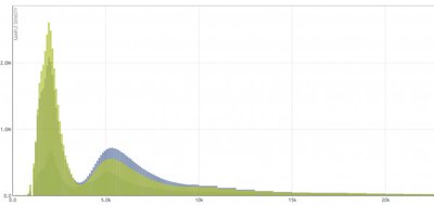 上面截图中的 RED 仪表盘持续时间图有四个百分点,第 50、90、95 和 99 百分位。我们也可以覆盖这些分布的百分位数。即使没有数据,我们也可以看到请求分布看起来很粗略的表示,但是这会做出很多假设。我们看看仅基于几个百分点的假设如何误导我们,这是其他模式的分布: