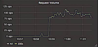 我们想要的组件在上面的屏幕截图中以红色圈起来。我们在左上角的每秒操作请求率,右上角的每秒失败请求数,以及底部的响应时间图。这张图上还有其他几个指标,但让我们仔细看看我们圈出的那些指标: