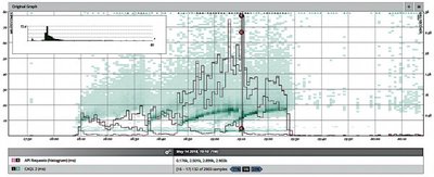 在此屏幕截图中,我们已经圈出了发生速度降低的热图的一部分。增加的延迟分布是相当缓慢的指示。图中的线表示受到一段时间影响的请求总数。