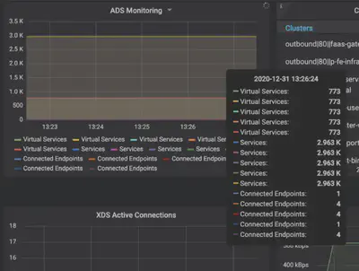 测试环境当下业务量级下,截止 2020 年末 VirtualService 已达 700+。