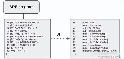 Just-In-Time(JIT)编译用来将通用的 eBPF 字节码翻译成与机器相关的指令集,从而极大加速 BPF 程序的执行: