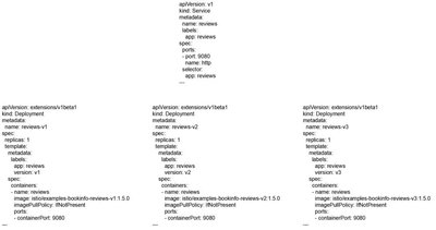 最后定义了一个 Service,对应的 label 是 app: reviews,作为这三个 Deployment 的服务发现。
