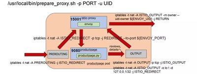 接下来就是在 PREROUTING 规则中,使用这个转发链,从而进入容器的所有流量,都被先转发到 envoy 的 15000 端口。