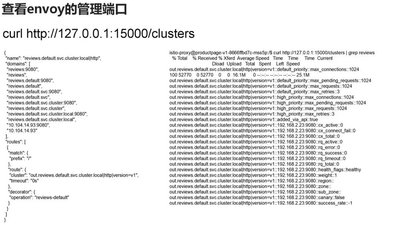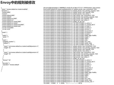 可以看到 envoy 的管理端口,路由有了两个版本的配置,也对应后端的两个 ip 地址。