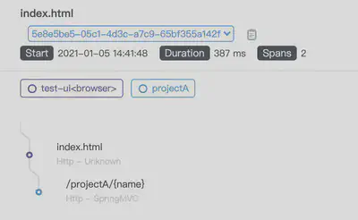 之后,使用 window.addEventListener ('xhrReadyStateChange', callback),在请求头中设置 sw8=xxxx。同时,向后端报告请求信息。最后,我们可以在追踪页面上查看追踪数据。下图展示的追踪页面。