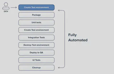 - 通过克隆生产环境创建一个按需暂存环境,每次部署前都会进行