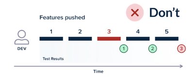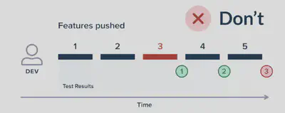 为了允许对功能进行细粒度的质量检测,流水线应该有权否决单个功能,并且能够选择其中一部分进行生产部署。获得这种保证的最简单方法是遵循每个功能一个分支的方法,其中短期功能(即在单个开发迭代中完成)对应于单个源代码控制分支。