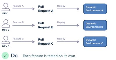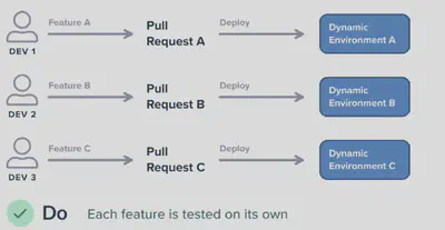 我们在最佳实践 12 中解释了应为开发人员测试单个功能而雇用动态环境的原因。这使你有信心每个在将其部署到生产之前,功能都是正确的。