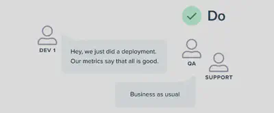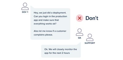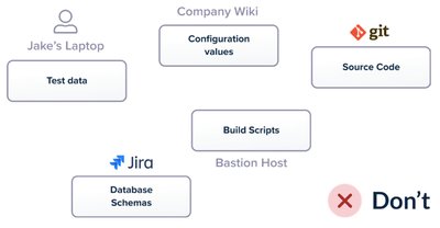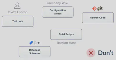 我们经常看到的常见反模式是使用特殊脚本在特定计算机或特定团队成员的工作站上进行部署,甚至是在 Wiki 页面中进行附件等。