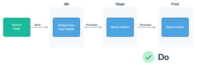 结果是保证在生产中部署的确切二进制/包与管道中测试的确切二进制/包相同。
