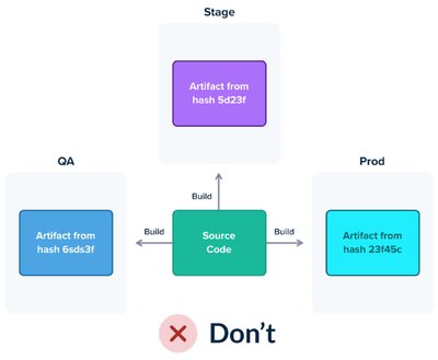 与先前一点的推论(所有环境都应部署相同的二进制/包)是部署工件应仅构建一次。