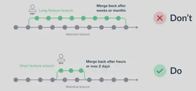 不幸的是,仍然有一些公司拥有长期的功能分支,这些分支在单个批次中收集多个和不相关的功能。这不仅使合并变得困难,而且在单个功能发现问题时也变得棘手(因为难以单独恢复它)。