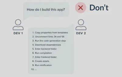 不幸的是,仍然有许多公司需要执行许多手动步骤才能运行基本构建。下载额外的文件、更改属性以及一般需要遵循的大型检查表等步骤应在同一脚本中自动化。