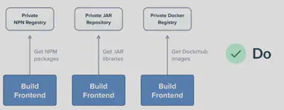 - 库依赖项应从内部代理存储库中获取,而不是从互联网中获取