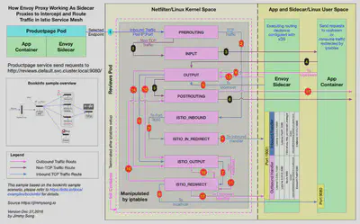 本文以 Istio 官方的 bookinfo 示例来讲解在进入 Pod 的流量被 iptables 转交给 Envoy sidecar 后,Envoy 是如何做路由转发的,详述了 Inbound 和 Outbound 处理过程。关于流量拦截的详细分析请参考理解 Istio Service Mesh 中 Envoy 代理 Sidecar 注入及流量劫持。