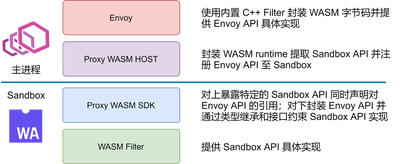 - 对 Envoy 主进程:暴露特定的沙箱 API 同时声明对 Envoy API 的引用;