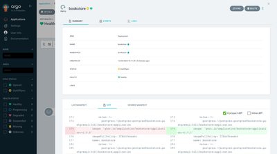 在过程的第二部分中,集群配置存储库是有关应用程序配置所需状态的单一真相源。Argo CD 定期监视 Kubernetes 集群,以查看 “实际状态” 是否与 “所需状态” 不同。当存在差异时,根据同步策略的不同,Argo CD 会尝试恢复到 “所需状态”。