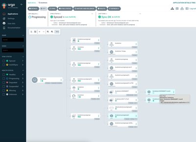 创建 Argo CD 应用程序后,我们可以看到应用程序在集群中正常运行。由于我们的应用程序需要一个数据库才能运行,我们为在集群中运行数据库添加了一个依赖关系,因此在默认 Helm Chart 的 Kubernetes 资源旁边可以看到其他资源。