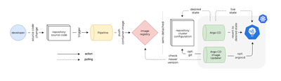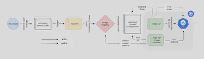 在深入研究技术实现之前,让我们先了解 GitOps 过程的概述,并强调 Argo CD Image Updater 在此过程中的角色。