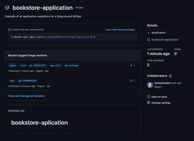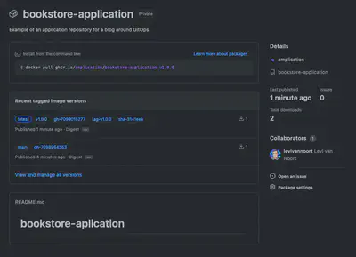 为了简化,镜像注册表是公开的,因此不需要在集群内部进行额外的身份验证。你可以在这里找到有关如何将 GitHub 包设置为公开的详细教程。如果你更喜欢使用私有仓库,请参考此指南以在集群内从私有仓库中拉取镜像。