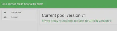 当导航到这个节点时,你应该看到实例程序的 v1 版本,因为它是唯一部署和在 VirtualService 中唯一可路由的版本。