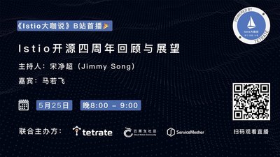 想了解 Istio 的来历吗?想知道 Istio 自我救赎般的架构重构吗?想窥探 Istio 开发背后的趣事吗?想一起解读最新版本的新特性吗?北京时间 5 月 25 日晚上 8 点,相约 B 站,让我们一起回顾 Istio 发布四周年的点点滴滴,B 站直播间不见不散!