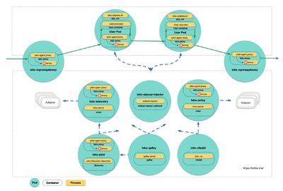 将 istio 系统组件细化到进程级别,大概是这个样子: