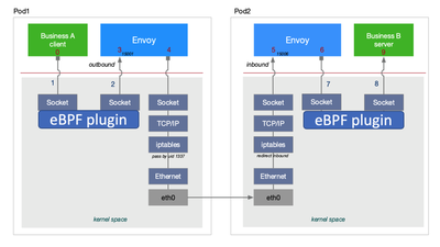 - 使用 XDP 进行加速,因为由于 istio proxy 的引入,Pod 和 Pod 之间的访问实际上是不需要经过主机上的 iptables 规则处理。基于这一点,我们可以利用 XDP 的快速转发能力直接将包发送到对应的网卡,完成快速转发。