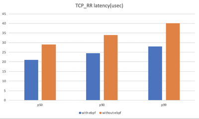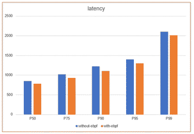 当然在初期的时候,我们也对 ebpf 的技术进行了一个验证,从验证结果中可以看到,在使用了 ebpf 的技术之后,它的延时大概有 20% 到 30% 的提升,说明 ebpf 的技术应用在本地通讯上还是有一定优化能力的。