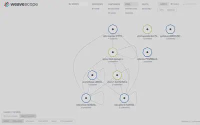 Weave Scope 提供了服务图,将用来展示测试过程中执行测试的请求流。Weave Scope Dashboard 类似下图: