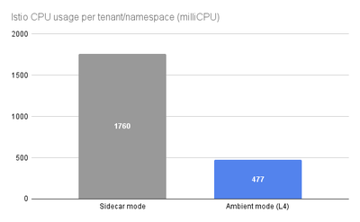 用户希望在 Istio 的环境模式下实施完整的第 7 层功能和特性,可以放心地进行。你可以按命名空间选择加入,但即使我们为所有租户运行了一个 waypoint —— 与完整的 sidecar 部署的特性相当 —— 我们仍然看到了实质性的 CPU 节省。请留意我们即将发布的博客,它将更深入地讨论第 7 层的成本和价值。