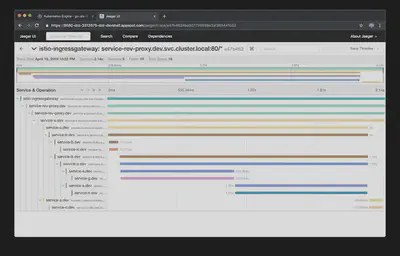 从 HTTP 的 JSON 迁移到 gRPC 确实需要重写服务代码中的追踪逻辑。事实上,我花了大部分时间来确保报头的正确性,它从 Istio Ingress 网关传播到 gRPC 网关反向代理、再到 gRPC 上下文中的服务 A,以及上游到所有依赖的、基于 gRPC 的服务。我确信在我当前的代码中有许多关于正确处理追踪以及如何在服务调用堆栈中传播这些信息的优化。