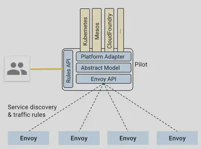 service、endpoint、pod、node等资源信息,监听 istio 控制平面配置信息(如 VirtualService、DestinationRule 等),翻译为 Envoy 可以直接理解的配置格式。 - proxy:也就是 Envoy,直接连接 discovery service,间接地从 Kubernetes 等服务注册中心获取集群中微服务的注册情况