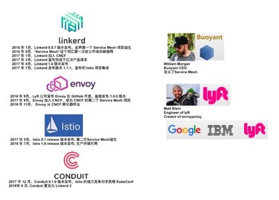 - 2016 年 1 月 15 日,前 Twitter 的基础设施工程师 William Morgan 和 Oliver Gould,在 GitHub 上发布了 Linkerd 0.0.7 版本,采用 Scala 编写,他们同时组建了一个创业小公司 Buoyant,这是业界公认的第一个 Service Mesh