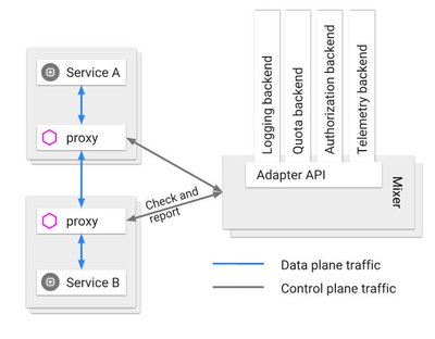 Istio 的四大功能点连接,安全,控制,观察,其中「控制」和「观察」的功能主要都是由 Mixer 组件来提供,Mixer 在 Istio 中角色: