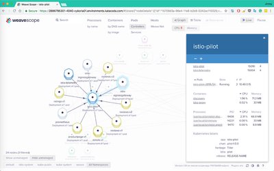 只要傻瓜式操作就可以部署一个 Istio 出来,同时还提供了 Weave scope 可以对 service mesh 的中的服务关系做可视化呈现。