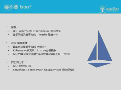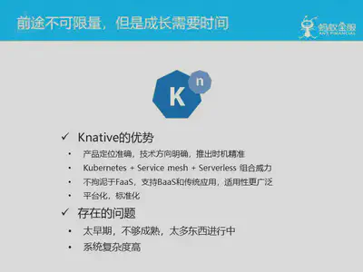 - 如果本来就有规划使用 Istio/Service mesh,比如像我们蚂蚁这种,那么 knative 对 Istio 的依赖就不是问题了,反而可以组合使用。