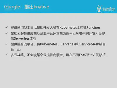 当前 serverless 市场产品众多导致碎片化严重,存在厂商绑定风险,而 google 推出 knative,希望能提供一套简单易用的 serverless 方案,实现 serverless 的标准化和规范化。
