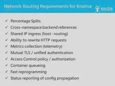 在网络路由能力方面也有很多欠缺,上面是 knative 在文档中列出来的需求列表。